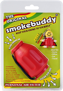 colors/designs may vary The Smokebuddy is a handy, and reliable, life saving air filter. Simply exhale your smoke through your easy-to-use Smokebuddy and odourless air comes out the other end. Smoke where you want, and when you want without anyone knowing the wiser. Keep second hand smoke away from friends, family, and neighbours with your Smokebuddy.